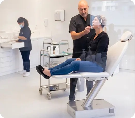 Réalisé à la clinique, le soin allie précision chirurgicale et confort. Pour les injections, le Dr Alizadeh utilise l'échographie faciale pour une sécurité et une précision absolue.