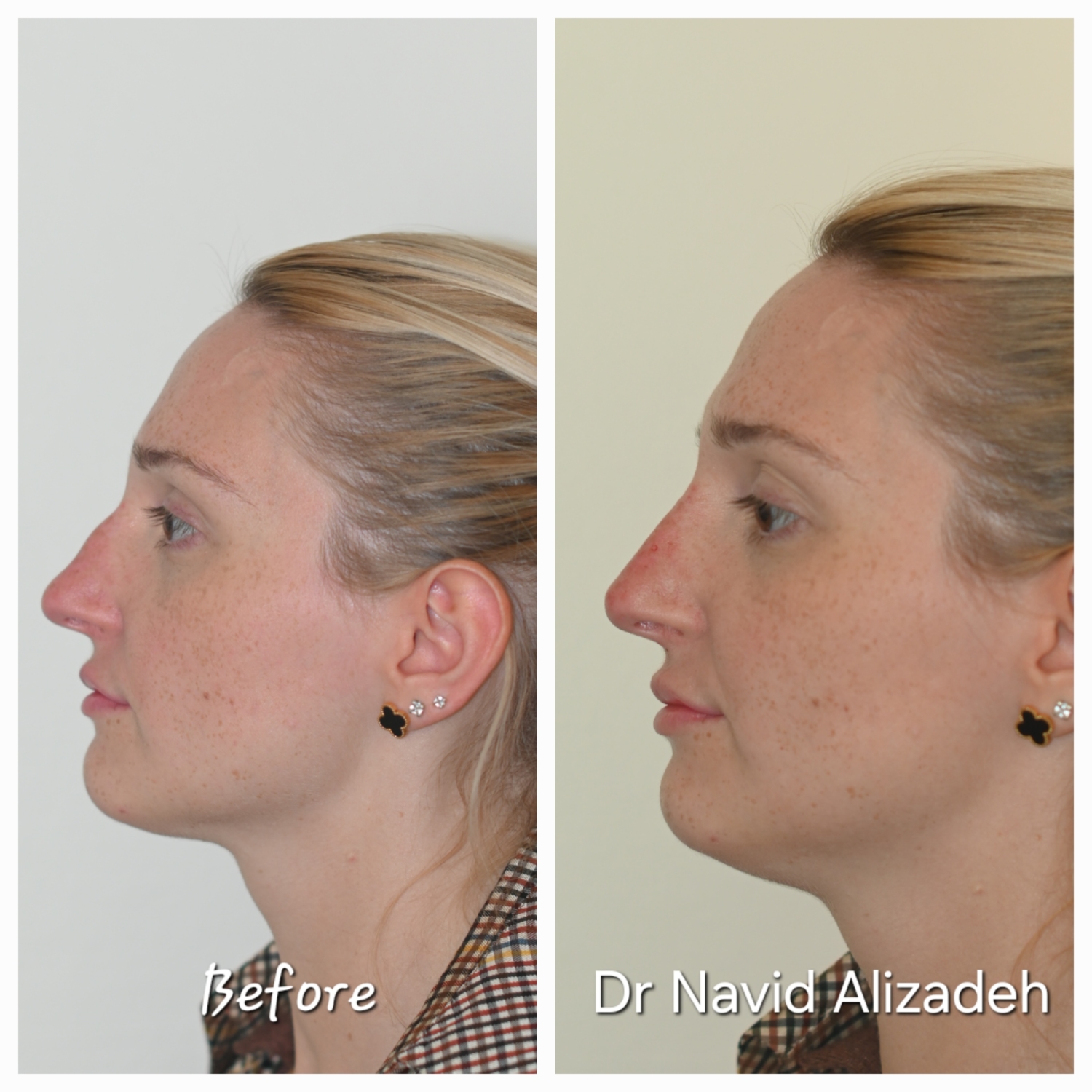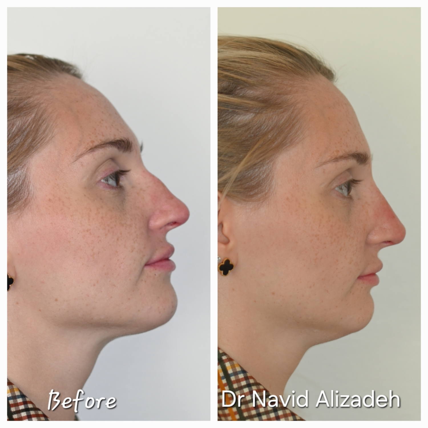 Nous commençons par l’application d’une crème anesthésiante pendant 10 minutes. Puis, l’injection d’un acide hyaluronique cohésif sera effectué de manière très précise pour corrgier les défauts du nez et le remodeler. Le gel d’acide hyaluronique agit comme un soutien, il s’agit d’une véritable sculpture du nez. Les résultats sont immédiats, et la technique est non-chirugicale. Il n’y a pas d’éviction sociale.